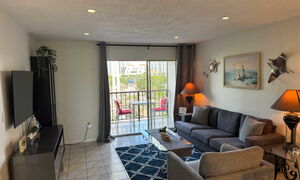 Wohnungsgröße 100 qm, 2 Badezimmer, 2 Schlafzimmer, moderne Küche, Balkon mit seitlichem Meerblick, 5.OG, hauseigener Parkplatz, Pool und Shuffle Board Anlage.