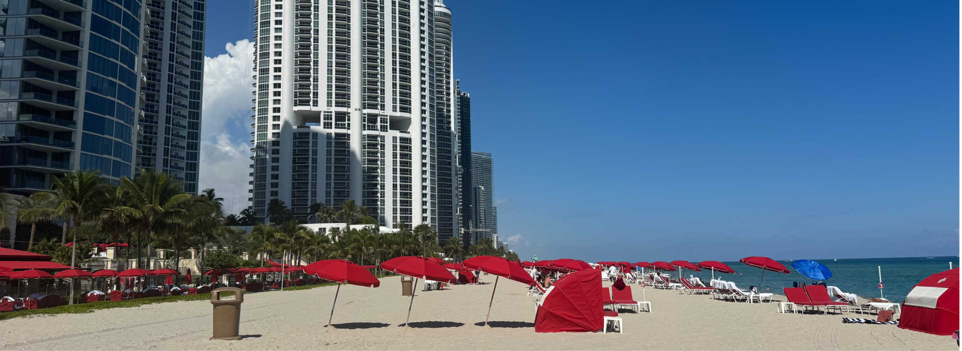 Der ideale Ort, um zu entspannen, die langen Strände und die vielen Sehenswürdigkeiten zu erkunden. Hier erleben Sie exklusiven Komfort und das Flair von Miami und Miami Beach. Direkt an der Atlantikküste gelegen, lädt Sunny Isles Beach mit seinen strahlend weißen Sandstränden Wassersportler und Sonnenanbeter gleichermaßen ein. Der perfekte Ort für Ihren Traumurlaub.